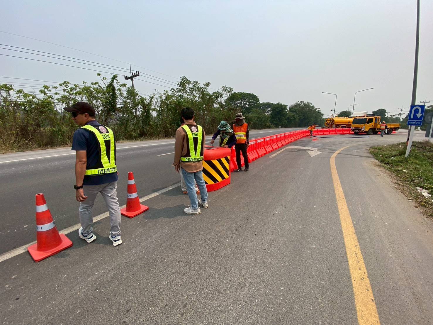 นายพูนศักดิ์ เมาะราษี ผู้อำนวยการแขวงทางหลวงพะเยา มอบหมายให้ นายวรวุฒิ ชำนาญชัย หัวหน้าหมวดทางหลวงแม่ใจ นำเจ้าหน้าที่ในสังกัด เข้าดำเนินการติดตั้งอุปกรณ์อำนวยความสะดวกและปลอดภัยในช่วงเทศกาลสงกรานต์ ประจำปี 2569 เพื่อลดอุบัติเหตุ ใน ทางหลวงหมายเลข 1 ตอน แยกประตูชัย - พาน บริเวณ กม.852+100 (จุดกลับรถ หน้าโรงเรียนบ้านห้วยบง)