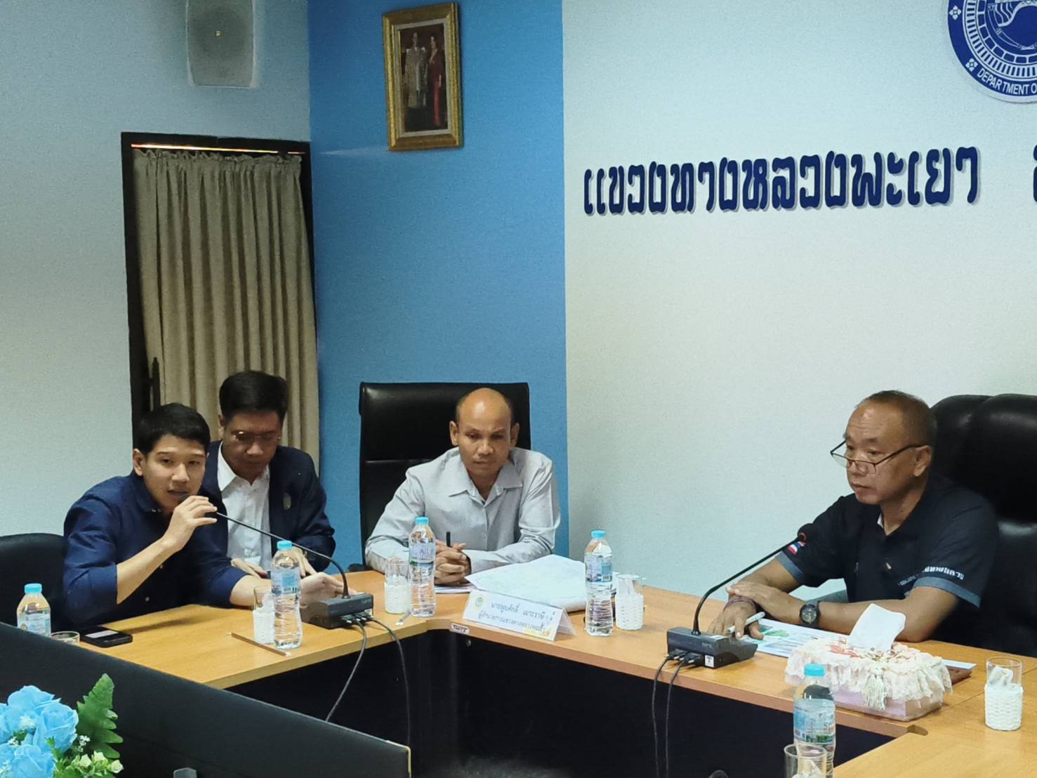 นายพูนศักดิ์ เมาะราษี ผู้อำนวยการแขวงทางหลวงพะเยา เป็นประธานการประชุม คณะกลุ่มบริษัทที่ปรึกษาสำรวจและออกแบบเพิ่มประสิทธิภาพทางหลวง บนทางหลวงหมาย 1091 สายพะเยา - น่าน ตอน อ.ปง - อ.เชียงม่วน ช่วง กม.28+000 - กม.59+000