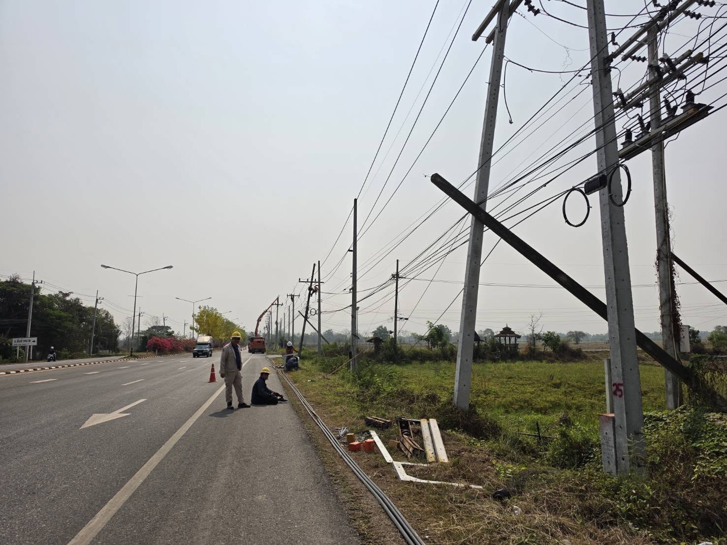 #เตือนภัย# โจรลักลอบตัดสายไฟทางหลวง สาเหตุทำให้ไฟฟ้าส่องสว่างดับ ทางหลวงหมายเลข 1 ตั้งแต่เขตตำบลแม่กา ถึง เขตอำเภอแม่ใจ