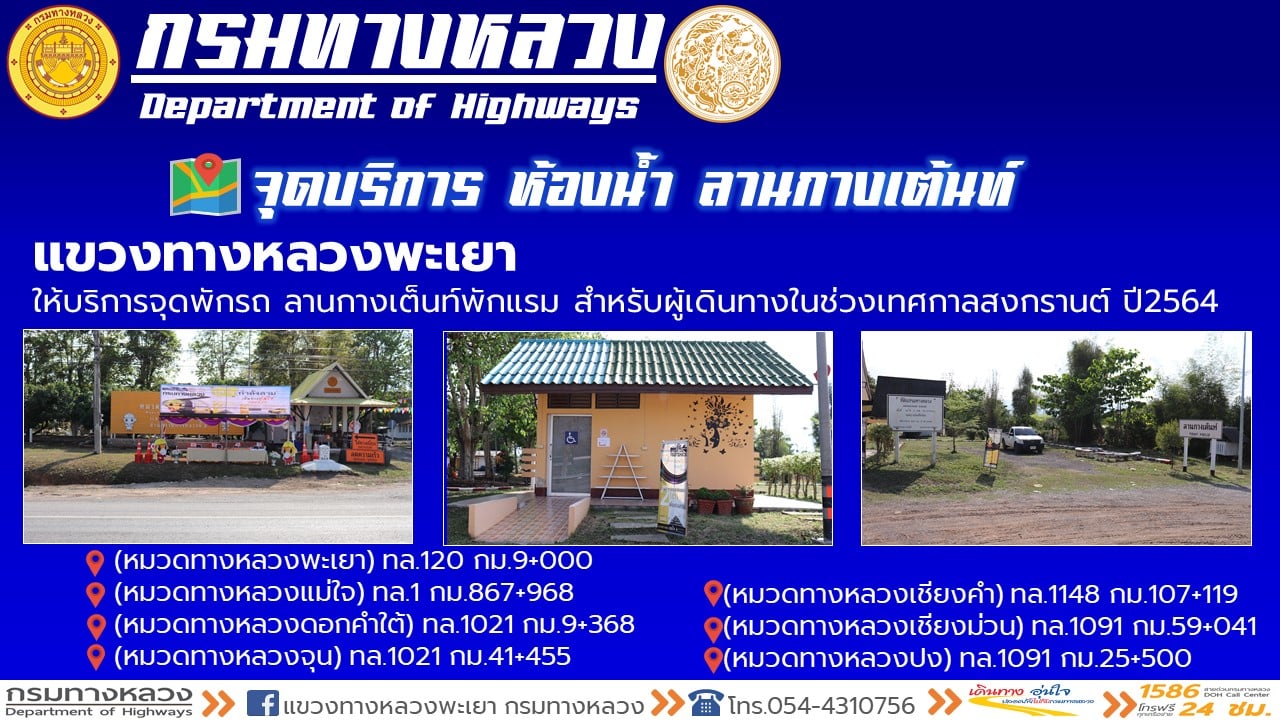 จุดบริการทางหลวง จุดบริการห้องน้ำ ลานกางเต้นท์ ปิดจุดกลับรถชั่วคราว |