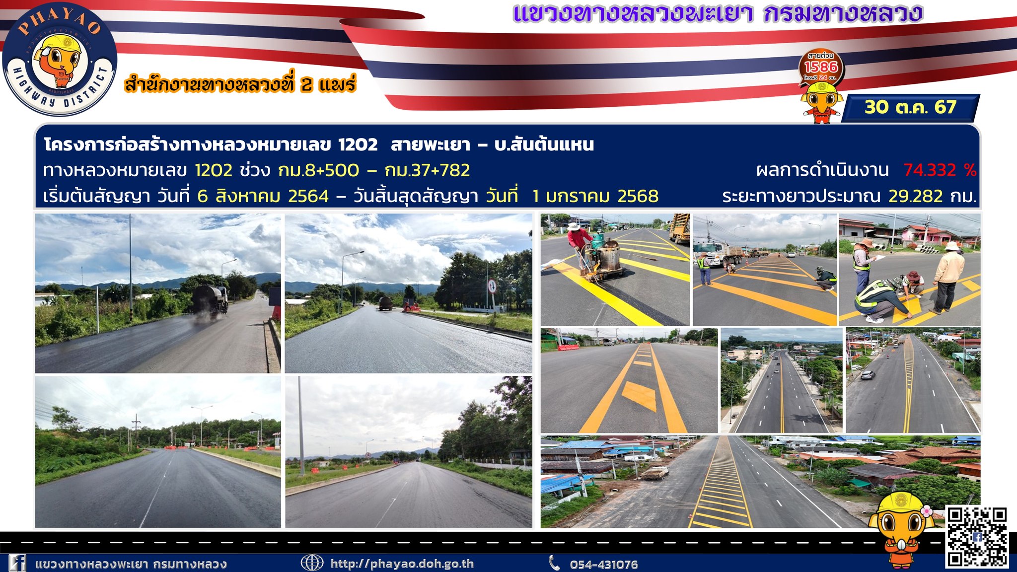 #ความคืบหน้า (เดือนตุลาคม 2567) โครงการก่อสร้างทางหลวงหมายเลข 1202 สาย สายพะเยา – บ.สันต้นแหน ช่วง กม.8+500 – กม.37+782