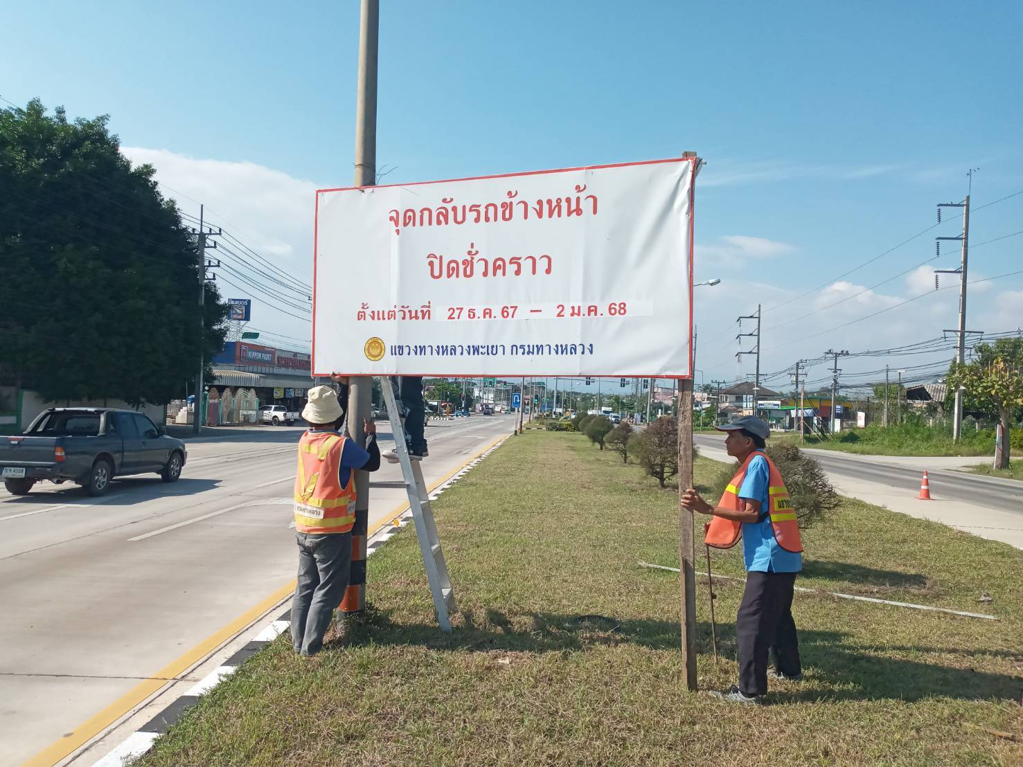 ข่าวประชาสัมพันธ์แขวงทางหลวงพะเยา กรมทางหลวง ปิดจุดกลับรถชั่วคราว ช่วงเทศกาลปีใหม่ ประจำปี 2568 ตั้งแต่วันที่ 27 ธันวาคม 2567 - วันที่ 2 มกราคม 2568 จำนวน 4 จุด