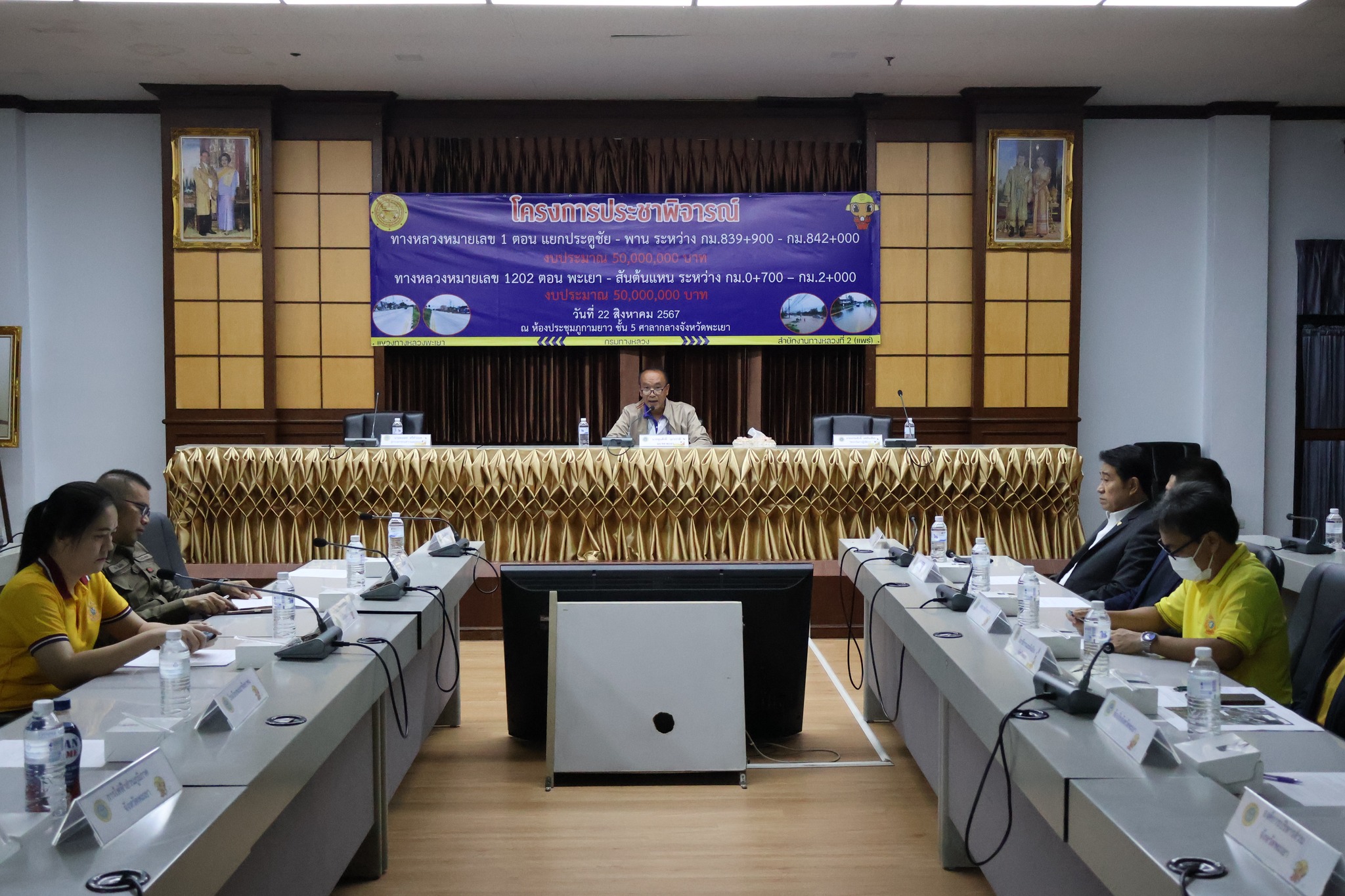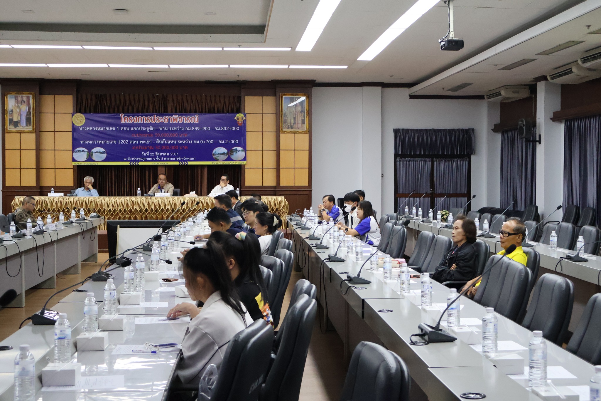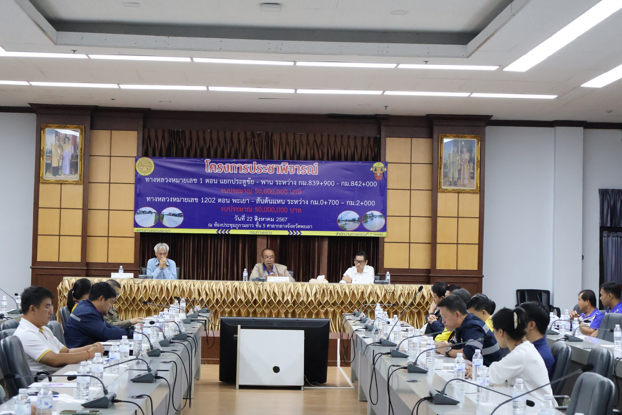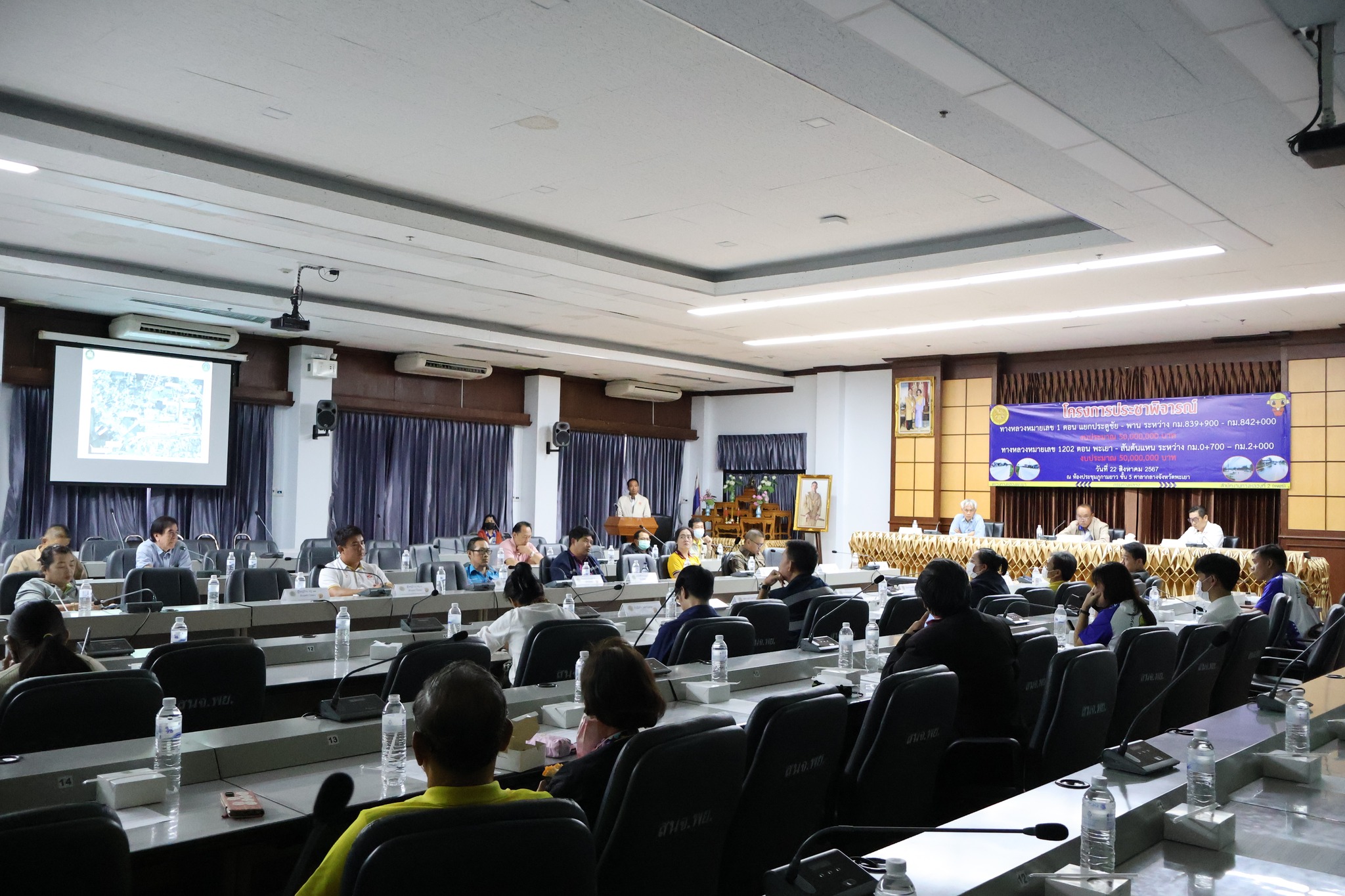 นายพูนศักดิ์ เมาะราษี ผู้อำนวยการแขวงทางหลวงพะเยา พร้อมด้วยเจ้าหน้าที่ในสังกัดแขวงทางหลวงพะเยา ได้ดำเนินการจัดโครงการประชาพิจารณ์ กิจกรรมบำรุงรักษาทางหลวง งานฟื้นฟูทางหลวง ทางหลวงหมายเลข 1 ตอน แยกประตูชัย - พาน ระหว่าง กม.839+900 - กม.842+000 และ ทางหลวงหมายเลข 1202 ตอน พะเยา - สันต้นแหน ระหว่าง กม.0+700 – กม.2+000