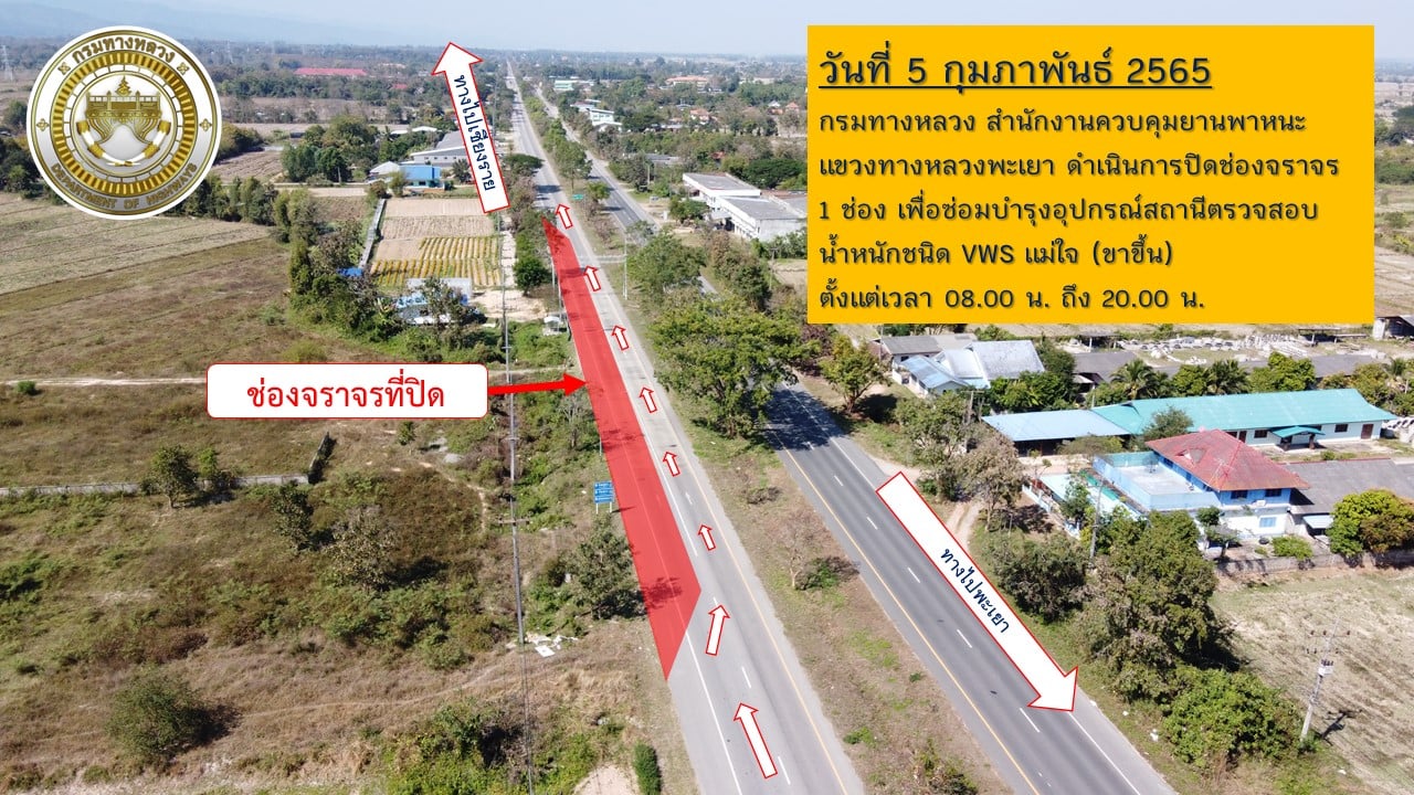 วันที่ 5 กุมภาพันธ์ 2565 ปิดการจรจร จำนวน 1 ช่องจราจร ตั้งแต่เวลา 08.00 น. - 20.00 น. เพื่อตรวจสอบและเช็คสภาพการทำงานของระบบ