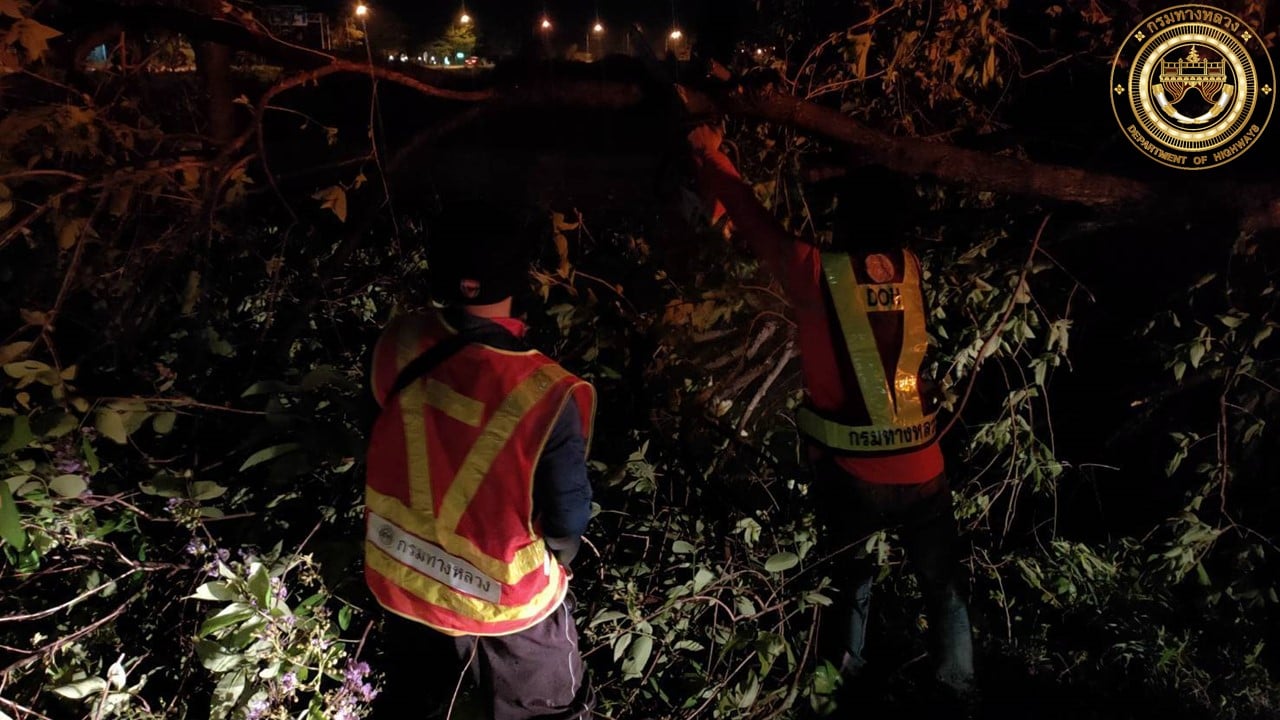 ดำเนินงานเปิดทางจราจร เนื่องจากเกิดเหตุฝนตกหนัก ลมกระโชกรุนแรง ทำให้ต้นไม้ล้มทับผิวทางจราจร ในวันที่ 17 มีนาคม 2565 ที่ผ่านมา