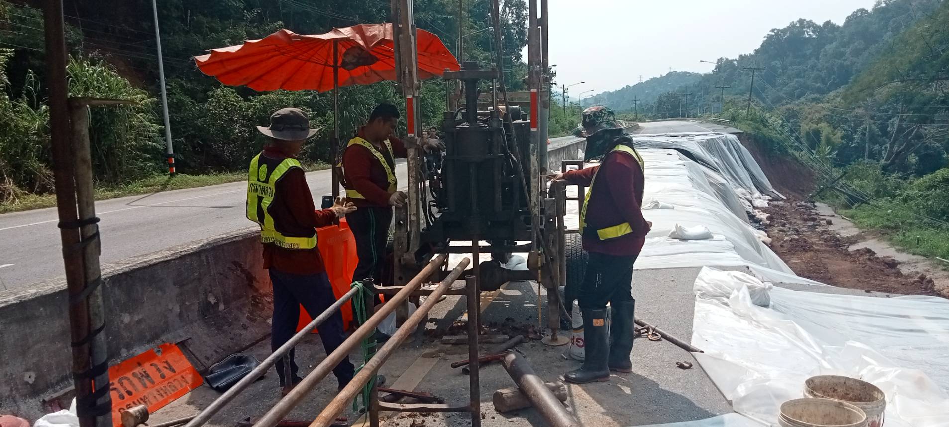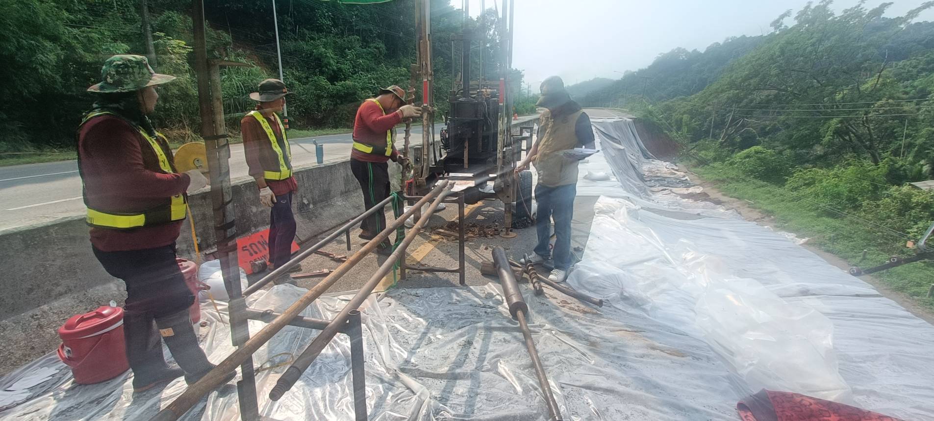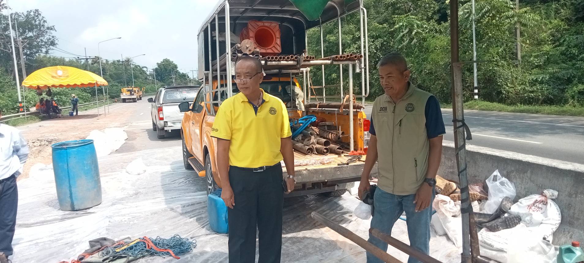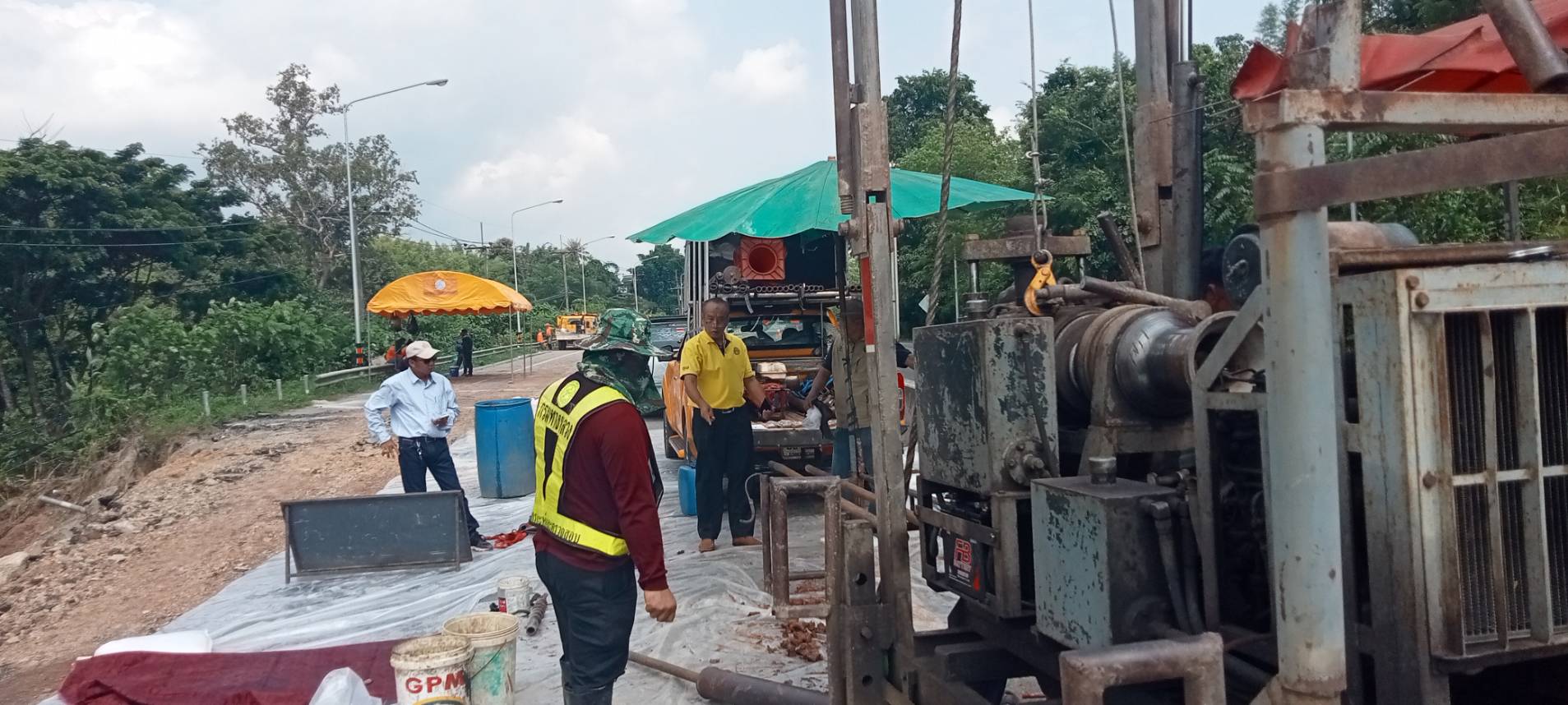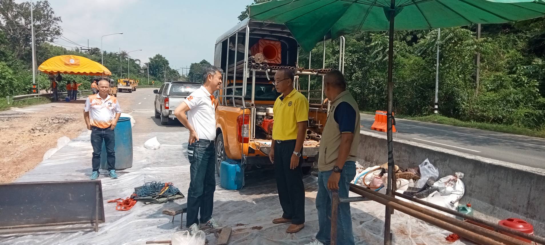 นายพูนศักดิ์ เมาะราษี ผู้อำนวยการแขวงทางหลวงพะเยา ให้การต้อนรับ นายสิทธิชัย วนานุเวชพงศ์ ผู้อำนวยการสำนักงานทางหลวงที่ 2 (แพร่) ได้ลงพื้นที่ติดตามตรวจสอบเจ้าหน้าที่ชุดเจาะสำรวจ จากสำนักวิเคราะห์และตรวจสอบ กรมทางหลวง ดำเนินการเจาะสำรวจชั้นโครงสร้างทางเพื่อประกอบการพิจารณาออกแบบแก้ไขปัญหาถนนทรุดตัว ทางหลวงหมายเลข 1 ตอนแม่กา - แยกประตูชัย ช่วงกม.815+500-กม.815+650