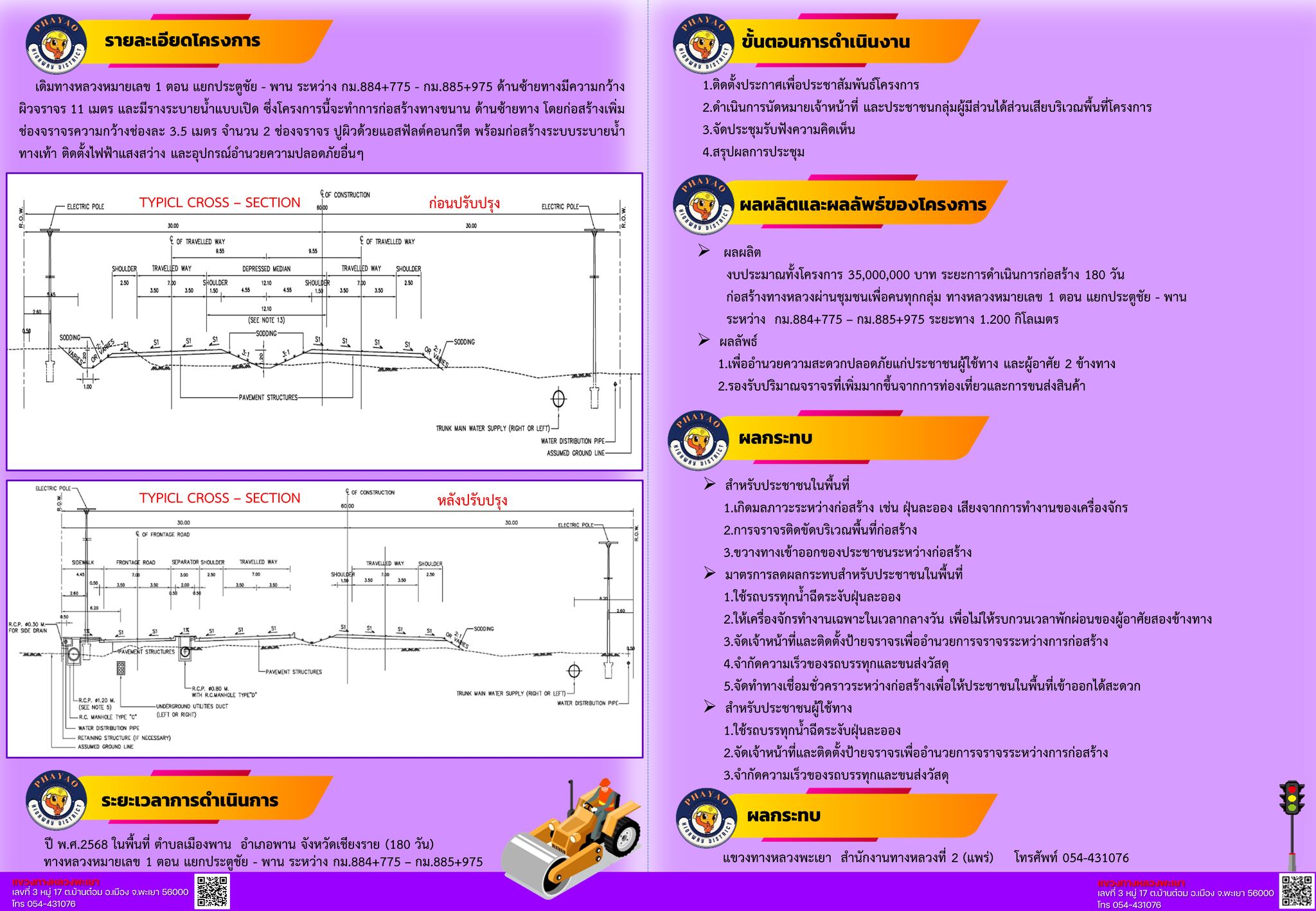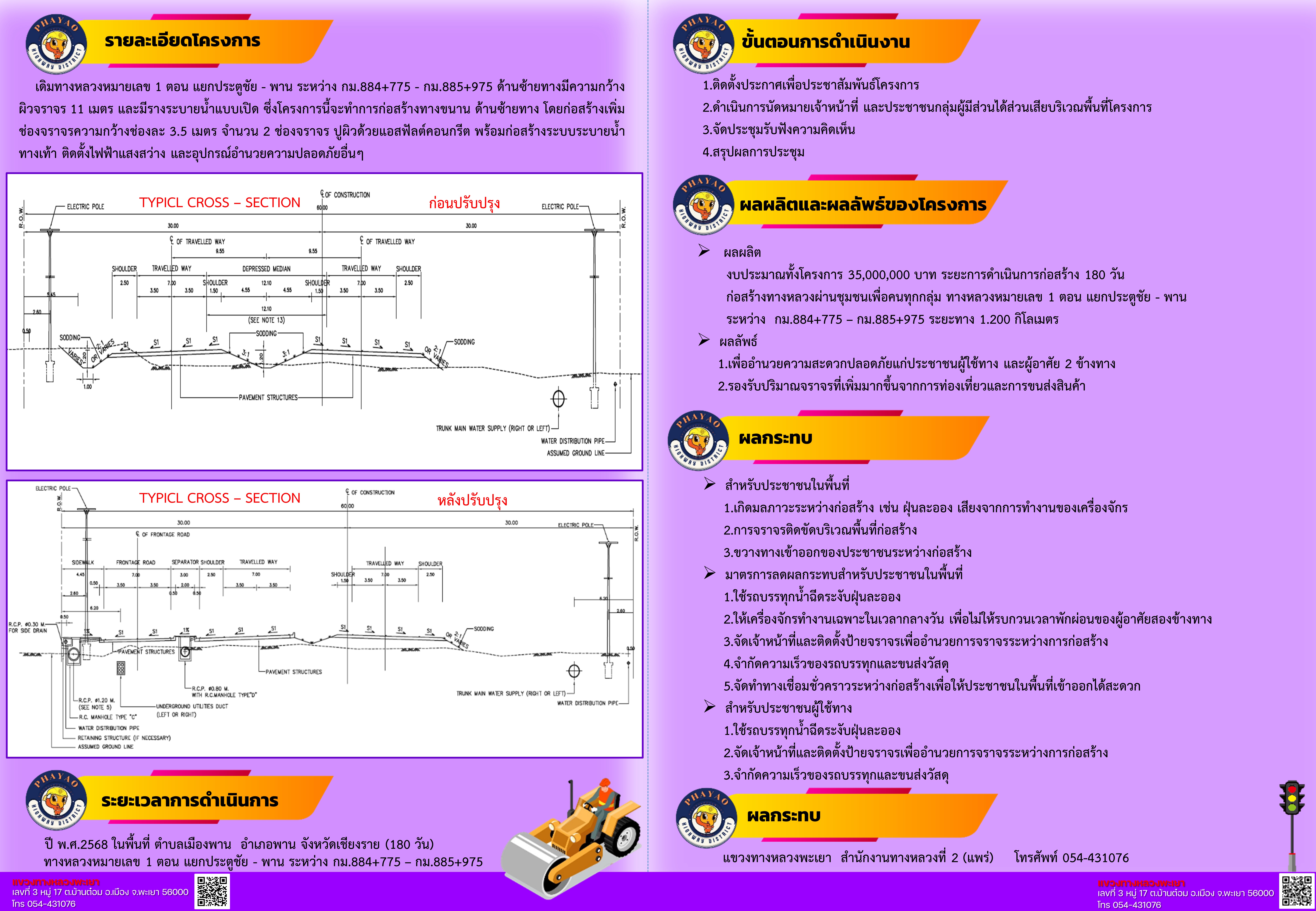 | แผ่นพับโครงการก่อสร้างโครงข่ายทางหลวงแผ่นดินกิจกรรมก่อสร้างทางหลวงผ่านชุมชนเพื่อคนทุกกลุ่มทางหลวงหมายเลข 1 ตอน แยกประตูชัย - พาน ระหว่าง กม.884+775 - กม.885+975แผ่นที่2 | 66 | ดาวน์โหลด |
