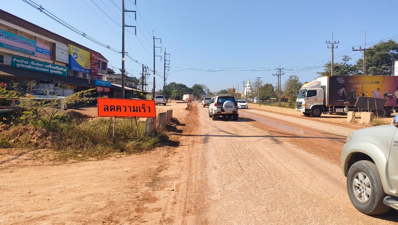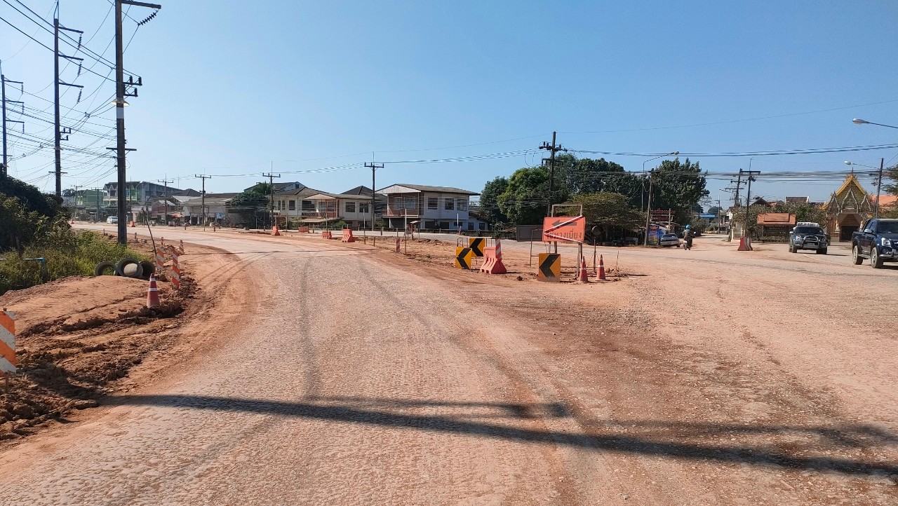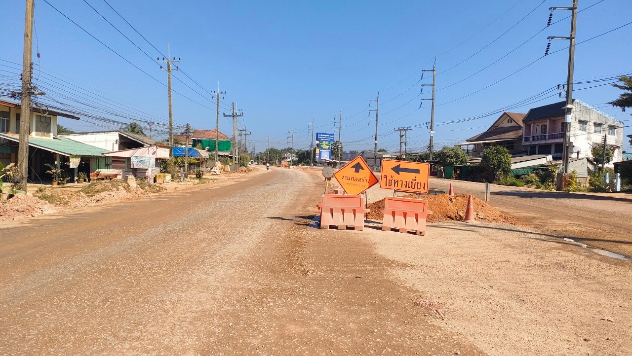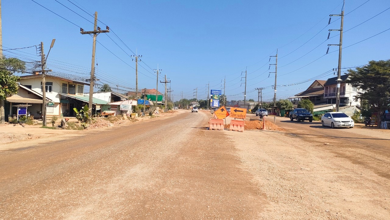 ประชาชนผู้เดินทางในช่วงเทศกาลปีใหม่ 2568 โปรดระวังเส้นทางก่อสร้างทางหลวงหมายเลข 1021 ตอน น้ำแวน - สะแล่ง ช่วงกม.70+300 - 71+950