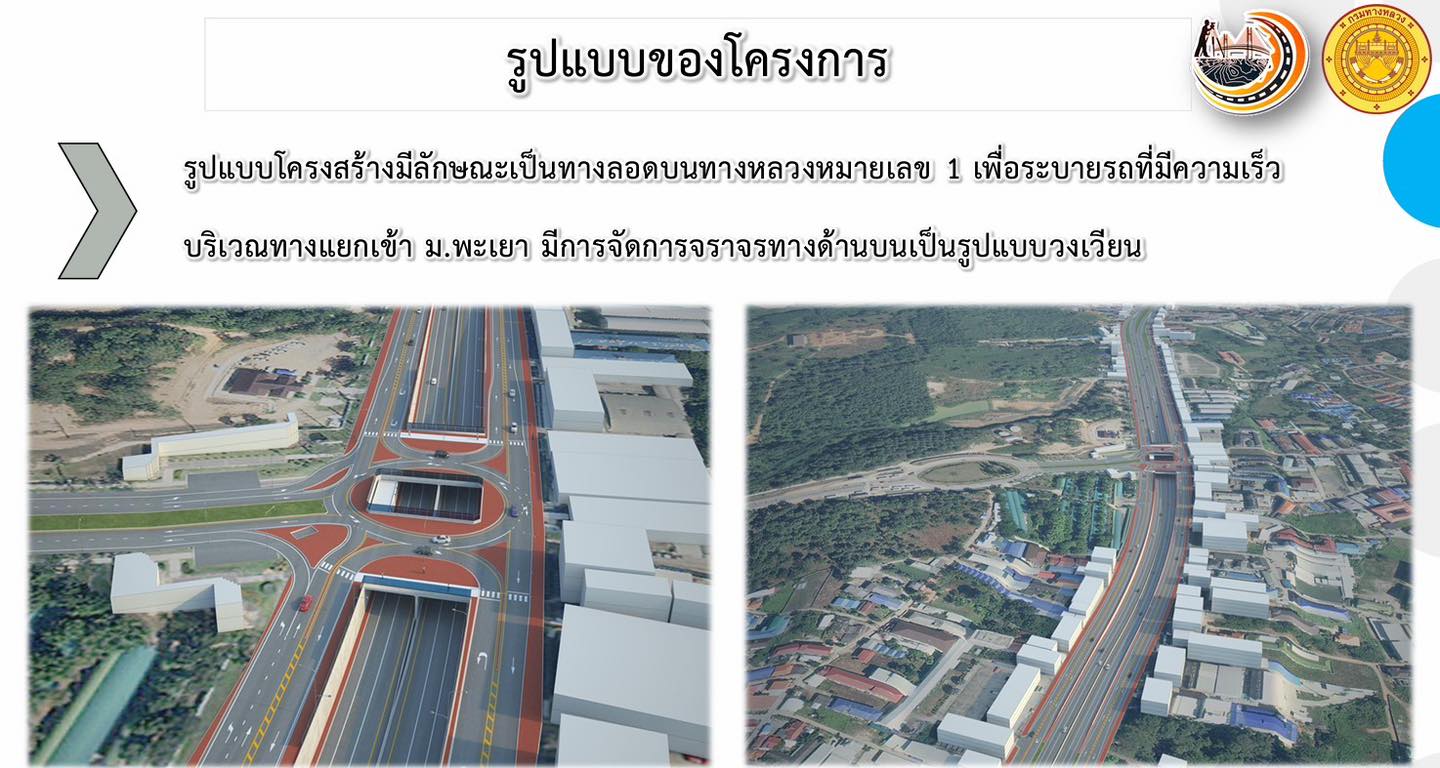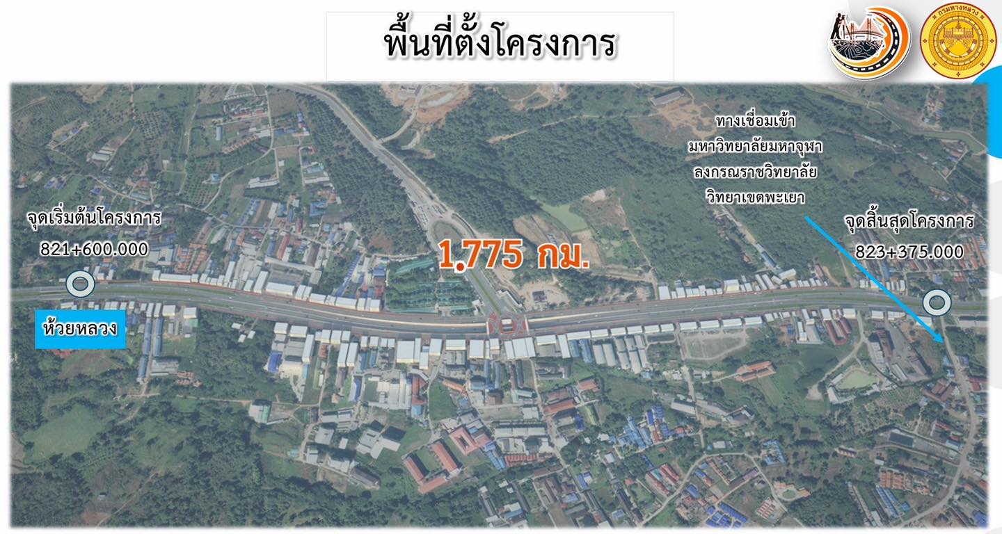 โครงการก่อสร้างทางแยกต่างระดับ จุดตัดทางหลวงหมายเลข 1 (ตัดทางเข้ามหาวิทยาลัยพะเยา) ตอน แม่กา - แยกประตูชัย ระหว่าง กม.821+600 – กม.823+375