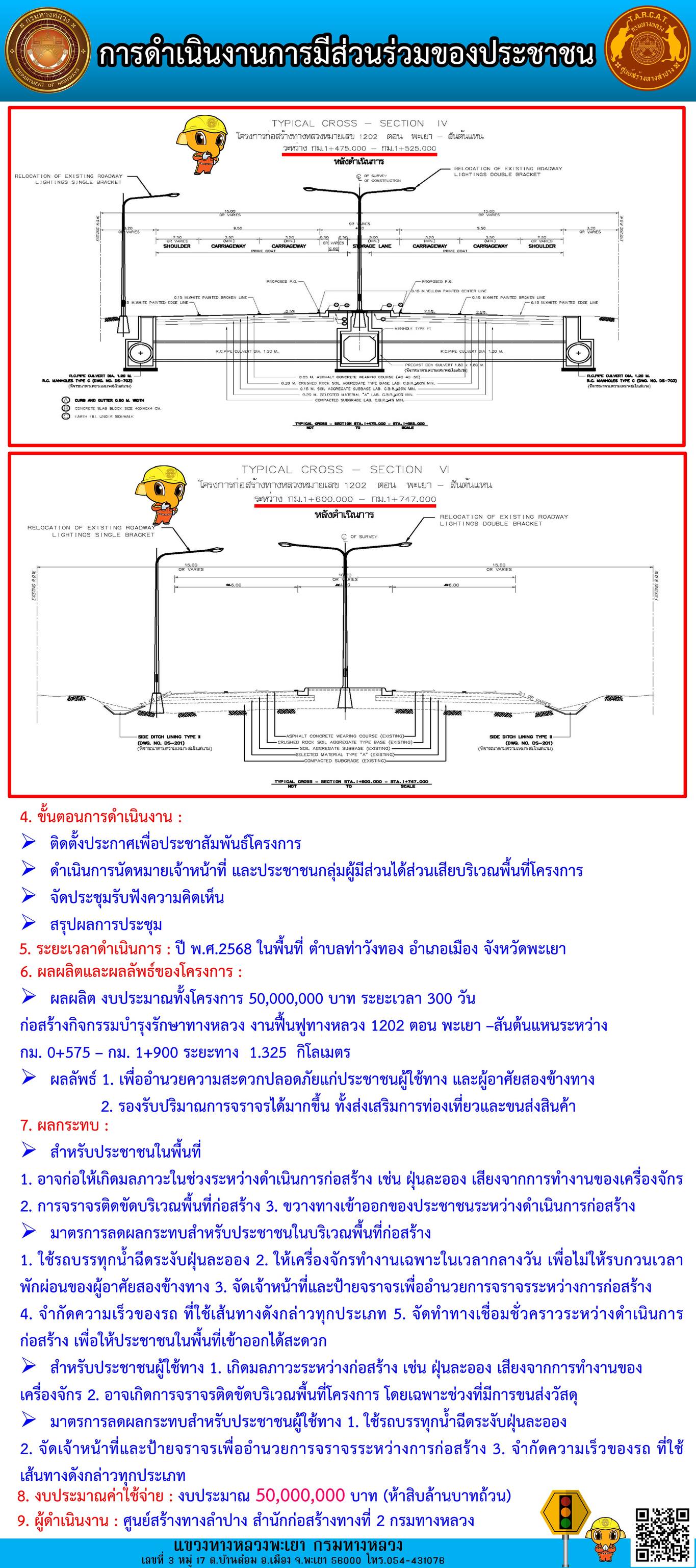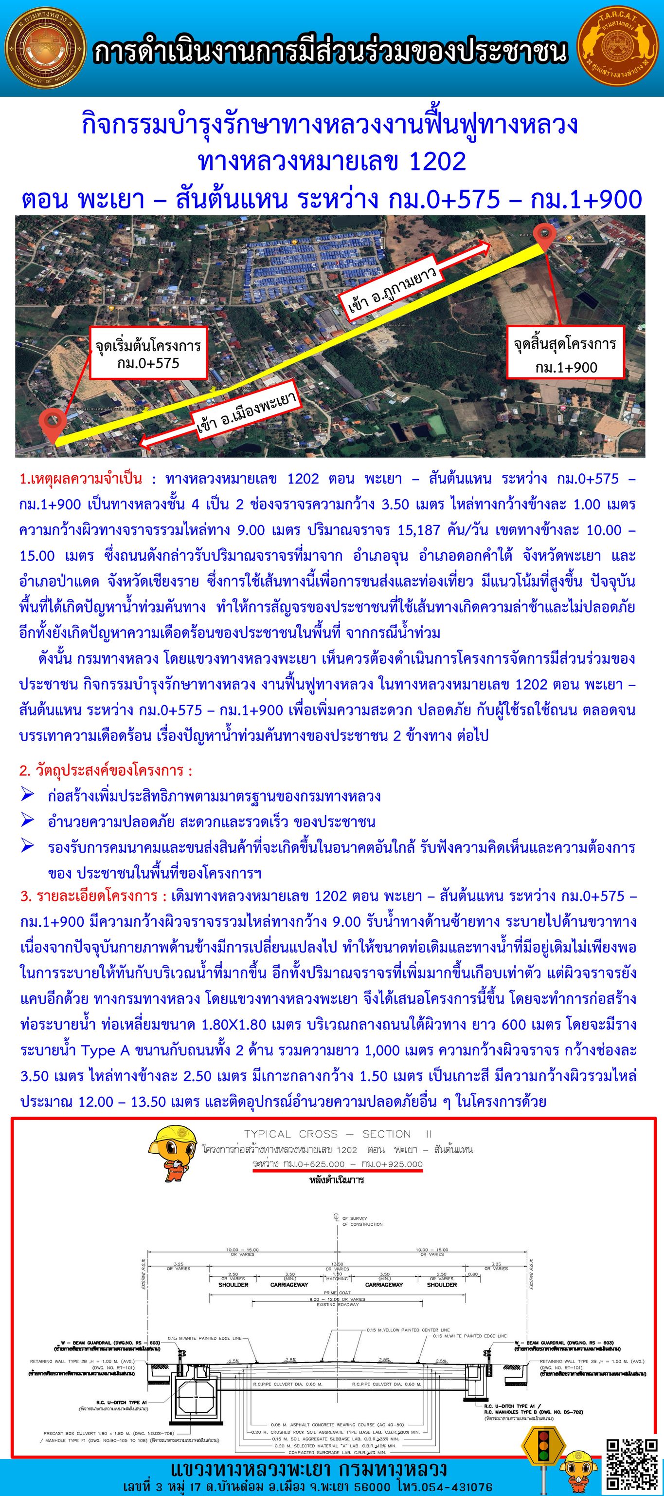 และ โครงการ กิจกรรมบำรุงรักษาทางหลวงงานฟื้นฟูทางหลวง ทางหลวงหมายเลข 1202 ตอน พะเยา – สันต้นแหน ระหว่าง กม.0+575 – กม.1+900