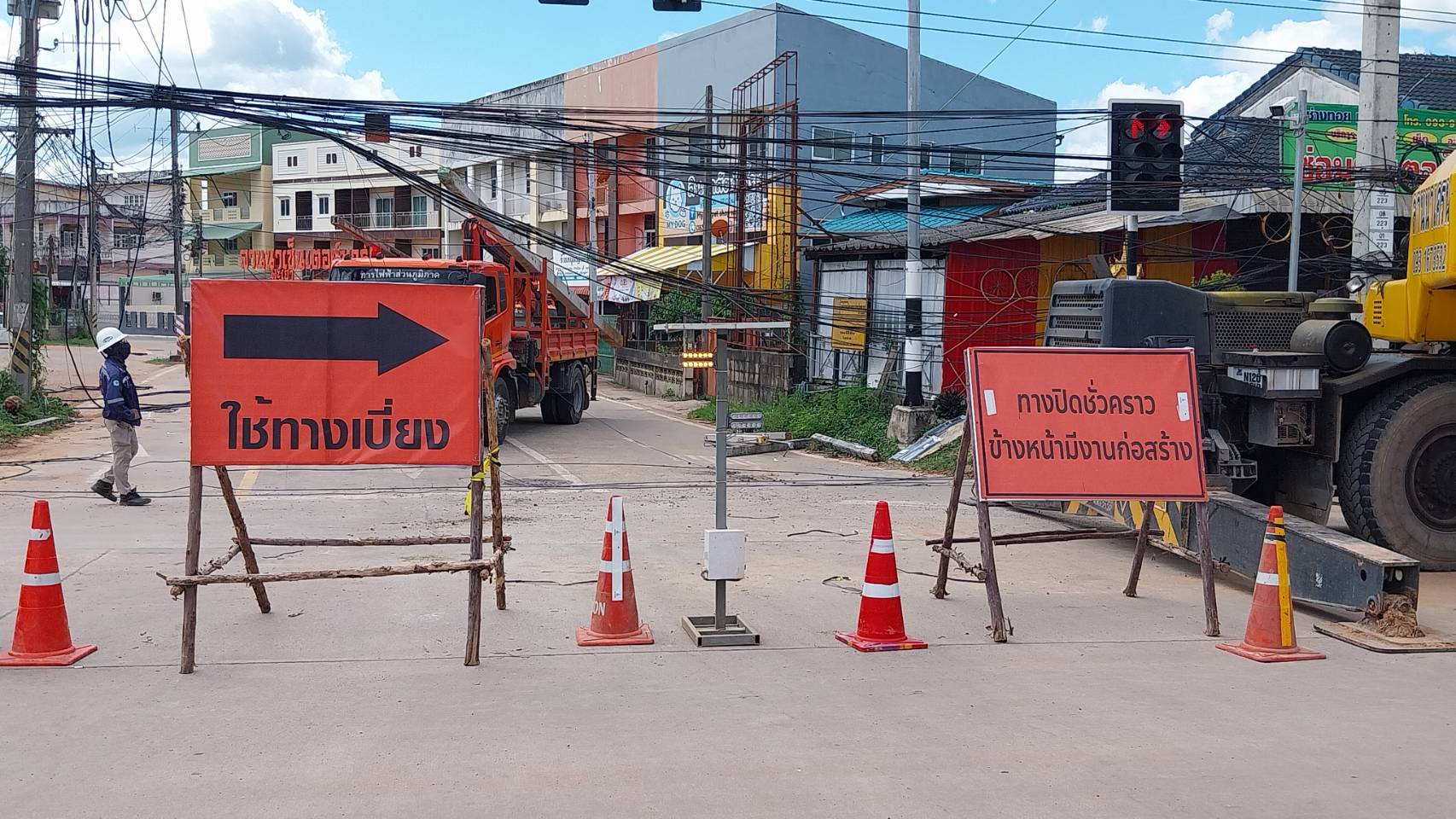 โดยจะดำเนินการขุดวางท่อเหลี่ยมพร้อมก่อสร้างอาคารเชื่อมท่อระบายน้ำ ขนาด 2.10x2.10 เมตร พร้อมทำโครงสร้างสร้างชั้นทางใหม่จนถึงผิวทางคอนกรีต ทดแทนผิวทางเดิมที่ขุดลอก จึงจำเป็นต้องปิดแยกดังกล่าวเพื่อความปลอดภัยของผู้ใช้ทาง