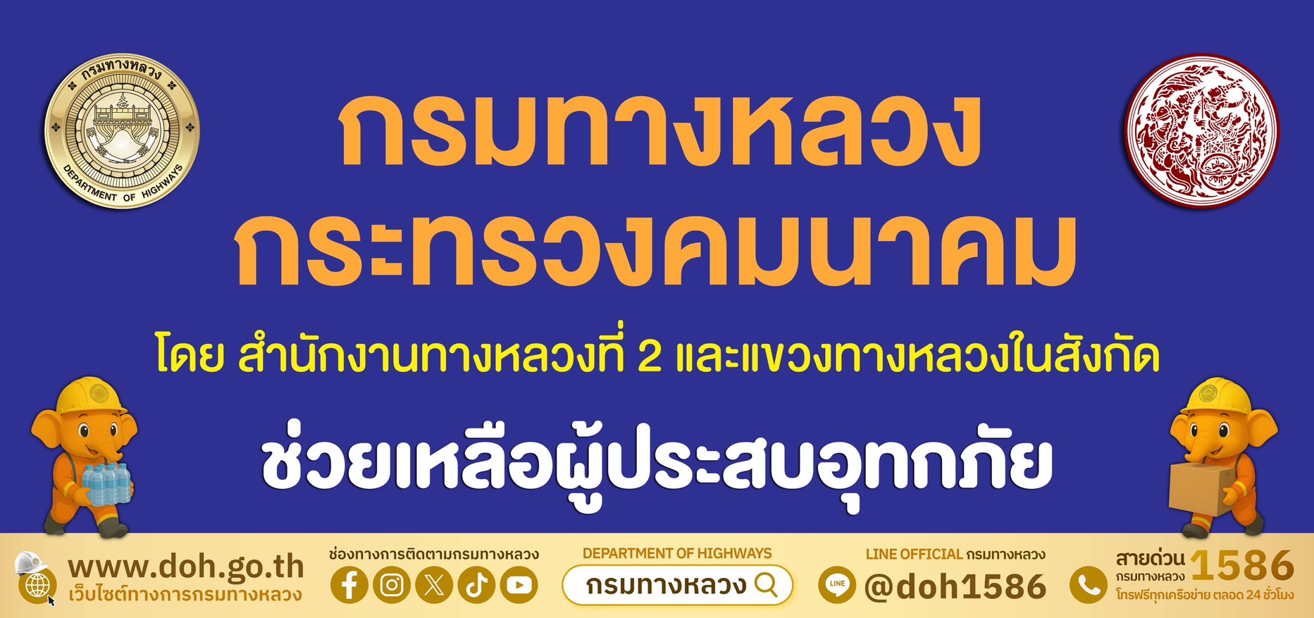 ข้อมูลข่าว : กรมทางหลวง กระทรวงคมนาคม โดย สำนักงานทางหลวงที่ 2 (แพร่) และ แขวงทางหลวงในสังกัด ดำเนินการช่วยเหลือผู้ประสบอุทกภัยภาคใต้ โดยดำเนินการจัดถุงยังชีพ ประกอบด้วย อาหารแห้ง อาหารสำเร็จรูป การดาษชำระ และน้ำดื่ม เพื่อร่วมเป็นส่วนหนึ่งในการช่วยเหลือผู้ประสบภัยอย่างเร่งด่วน